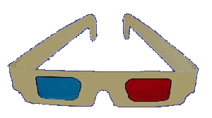 Anaglyph brillen (anaglyph 3D stereo) Een tweede manier om de illusie van diepte te creëren is anaglyph 3D. Bekend maar tegenwoordig nauwelijks gebruikt, deze brillen geven de gebruiker de ervaring van meer diepte in het beeld. Een rood beeld wordt toegevoegd als een soort diepte schaduw. De gekleurde glazen werken als een filter die het beeld opsplitst voor links en rechts. De anaglyph techniek creëert een duidelijke diepte. Door het gebruik van de rode diepte schaduw is er een licht zichtbare schaduw zichtbaar. Het zien van de diepte en hierop concentreren vergt een lichte inspanning van de ogen en hersenen. Dit in tegenstelling tot page flipped 3D stereo. |